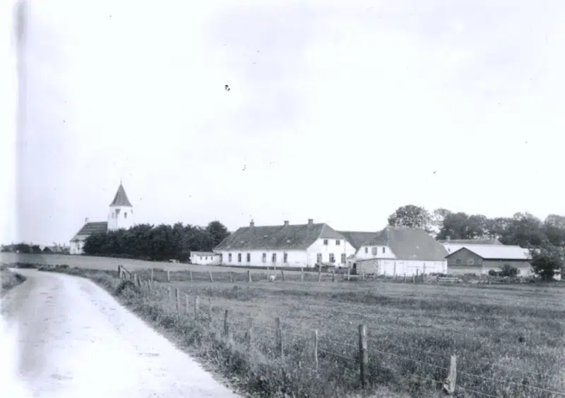 Den nybyggede frimenighedskirke bag Rødding Højskolegård, 1912. Foto: Rødding Lokalhistoriske Arkiv.