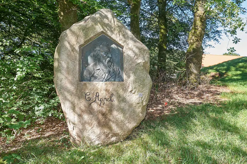 Stenen for Cornelius Appel fik Skibelundforeningen travlt med at få opstillet, da det kom dem for øre, at man var i færd med at rejse en sten for ham i Rødding. Begge mindesmærker er udført af billedhugger Niels Hansen Jacobsen.