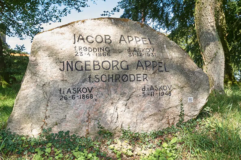 Mindestenen blev indviet på Jacob Appels fødselsdag den 23. april 1944 og Ingeborg Appel tilføjet i 1960.
