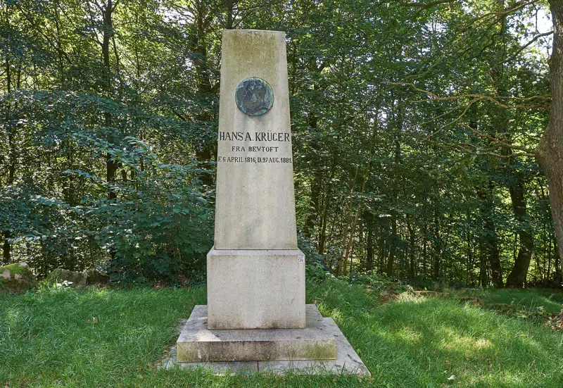 Du står nu foran politiker H A. Krügers sten. Hans Andreasen Krüger var de dansksindede nordslesvigeres repræsentant i den tyske rigsdag, og som du kan se på hans mindesten kom han her med det standhaftige opråb: