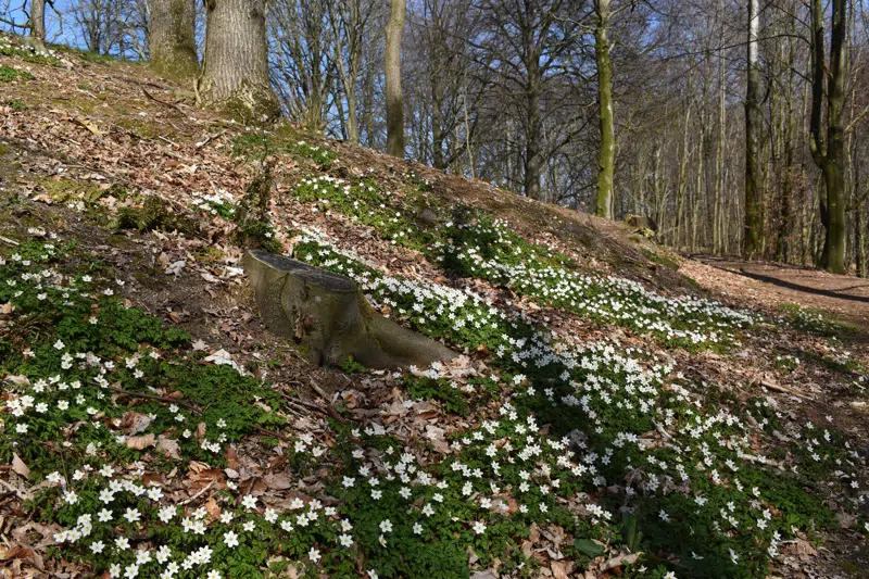 I området kan man, især i egekrattet, opleve et stort flor af hvide anemoner om foråret. I skoven kan man også opleve krat-viol, liljekonval, stor konval og majblomst.